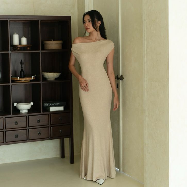 ALICIA DRESS | ROOHA | Dress Panjang Wanita Off Shoulder Multiways Rib Ribbed Knit Terusan Maxi Sabrina Dress Backless