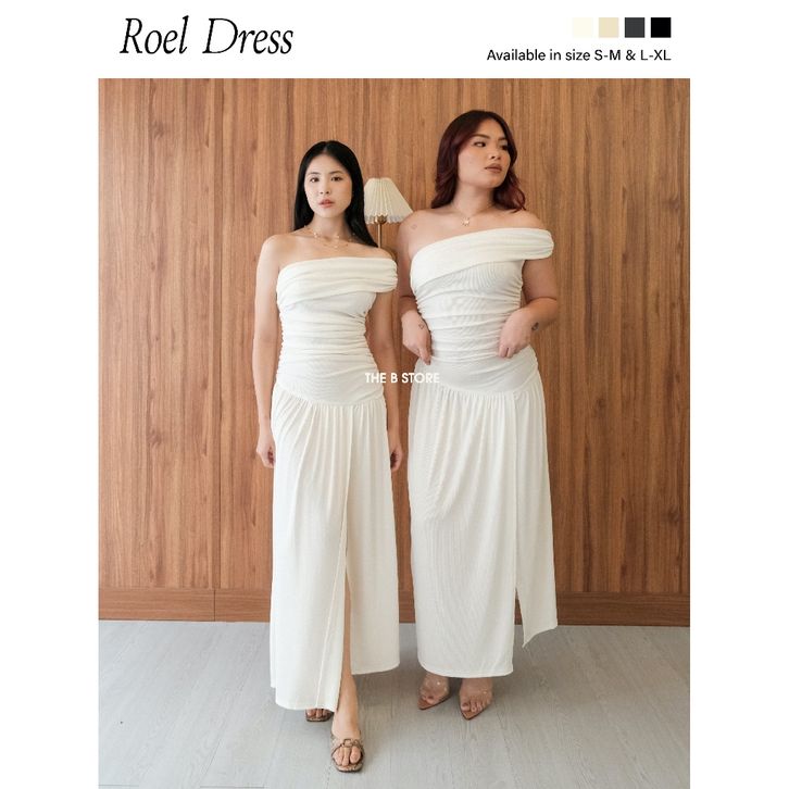ROEL DRESS | THEBSTORE | Dress Panjang Wanita Off Shoulder Assymetric Knit Terusan Maxi Dress Korean Long Dress