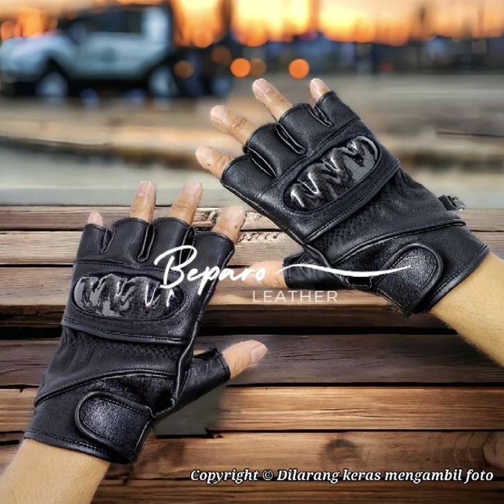 Promo Sarung Tangan Sarung tangan Motor Kulit Asli Body protector pendek setengah Jari Anti sinar UV