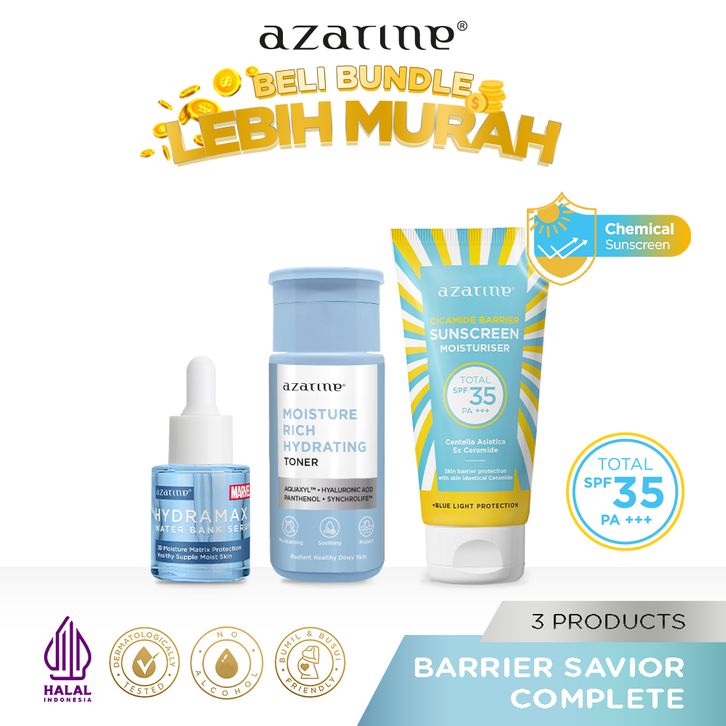 AZARINE BASIC SKINCARE KIT (SUNSCREEN + TONER + SERUM) [3PCS] PAKET TRIAL KULIT KOMBINASI SENSITIF BERJERAWAT BERMINYAK