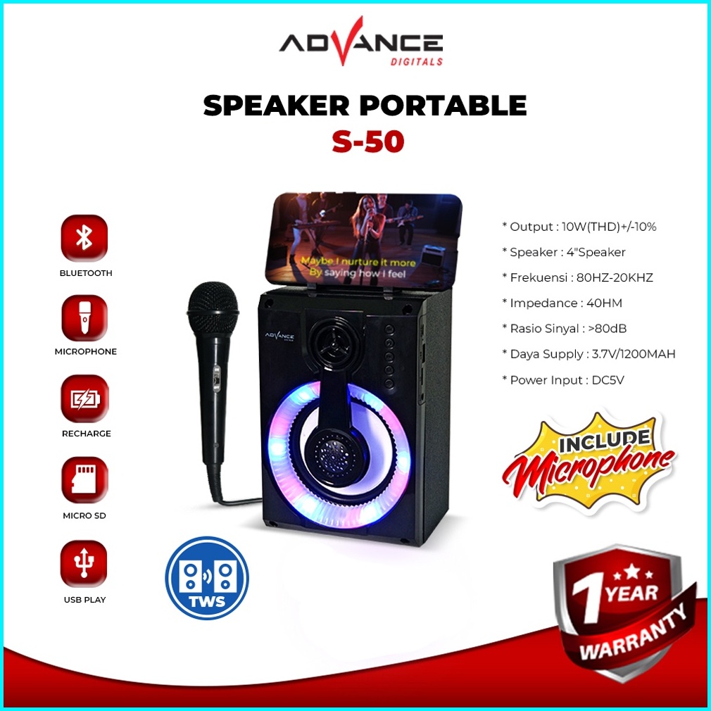 Advance Digitals S50 Speaker Microphone Gratis Mic Karoke Murah Garansi 1 Tahun
