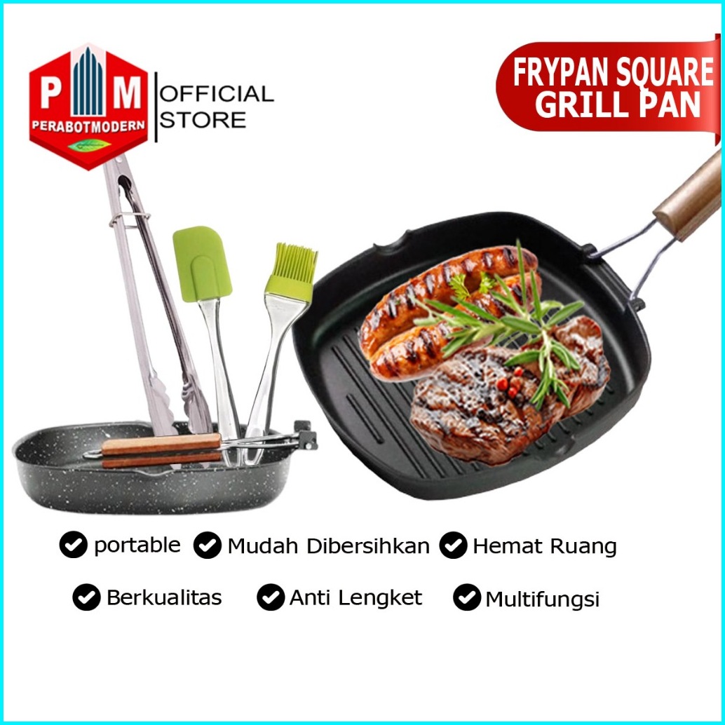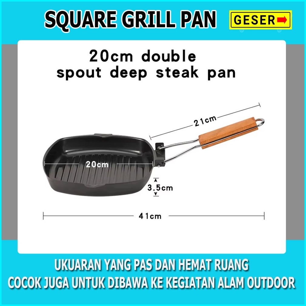 Pemanggang Square Grill Pan 20cm Alat Panggang Grill Pan Wajan Panggangan Bakaran Square Grill