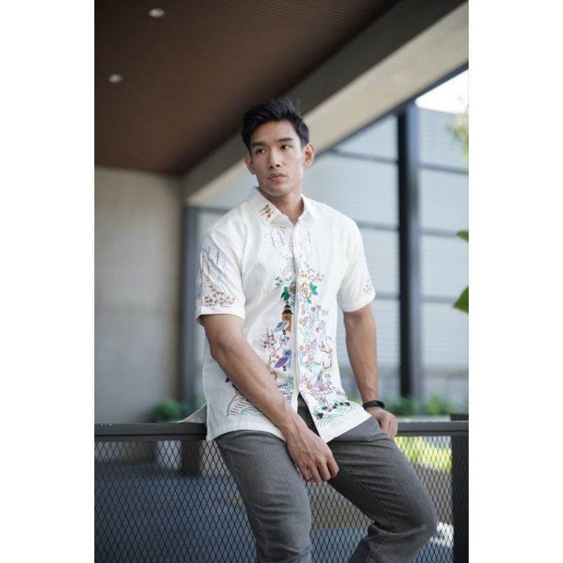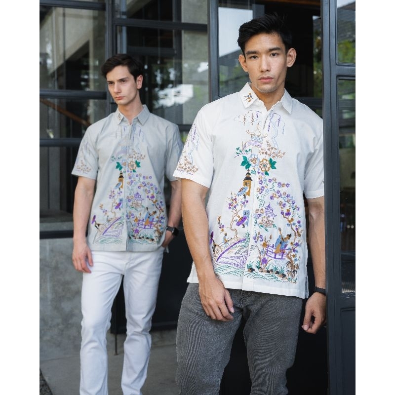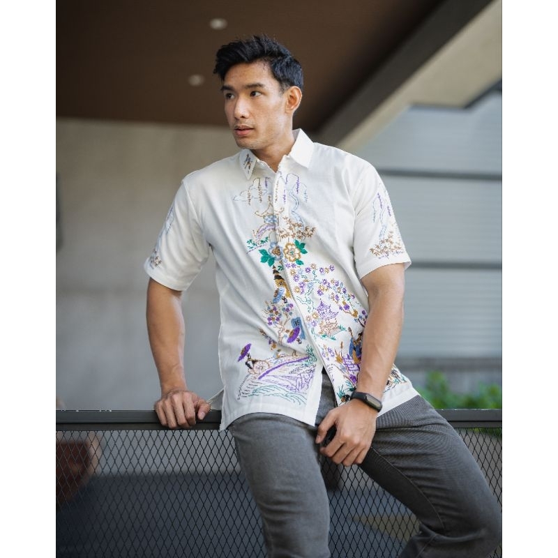 Kemeja Bordir Pria NUC.ID Mandala 01 Putih Katun S-3XL