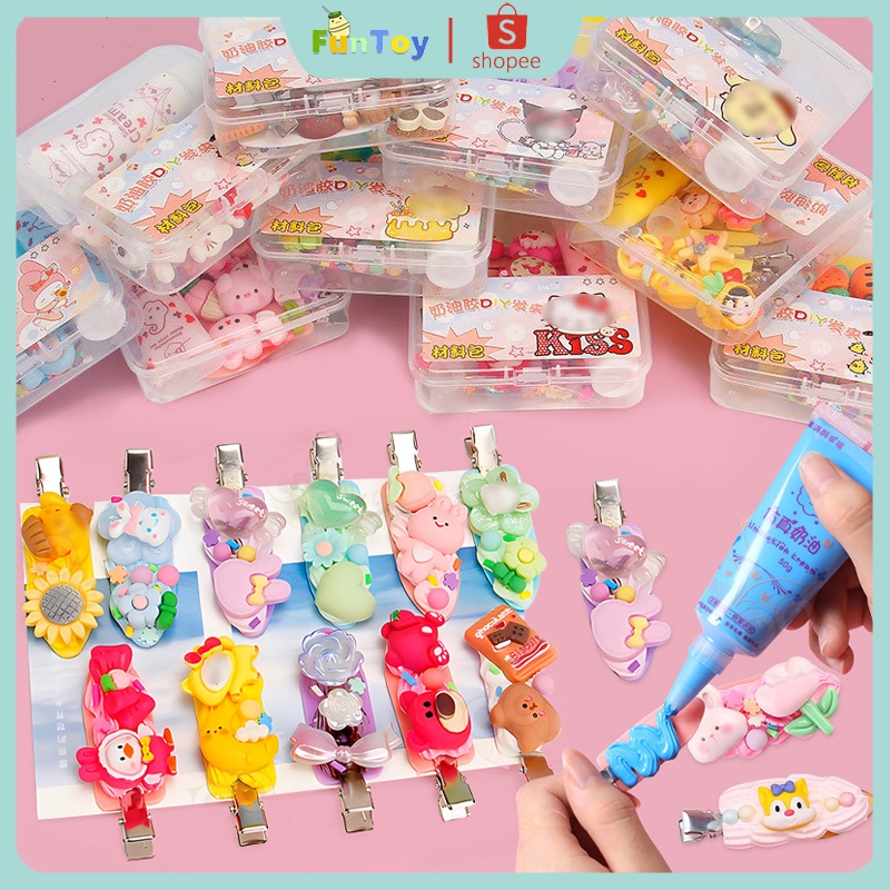 Mainan DIY Jepit Rambut Lem Krim Aksesoris Resin Lucu Paket Bahan Tas Buatan Tangan ORIGINAL TERLARIS