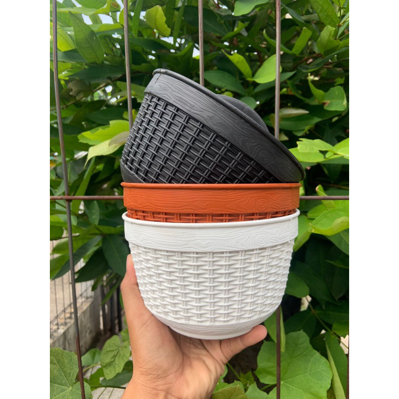 pot tempel dinding motif anyam rotan minimalis tebal dan murah