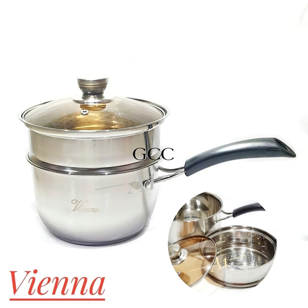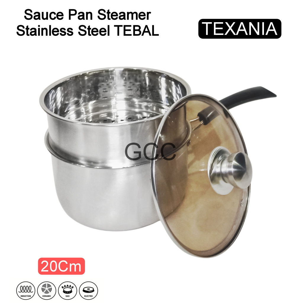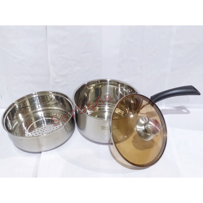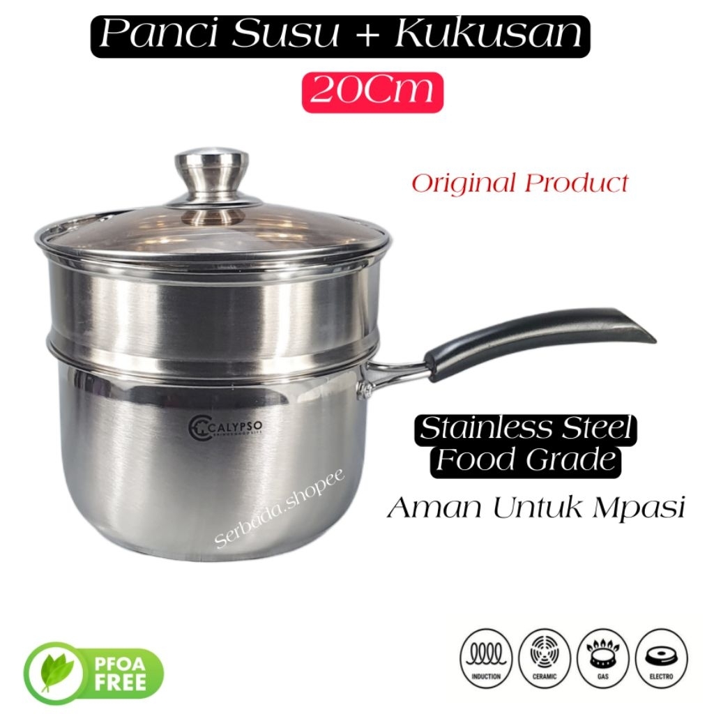 A1 Dandang Steamer 20Cm Panci Kukus Kecil Susun Stainless Tebal Tutup Kaca Calypso Milkpan Kukusan
