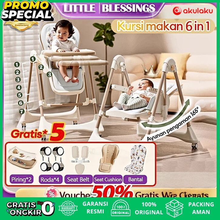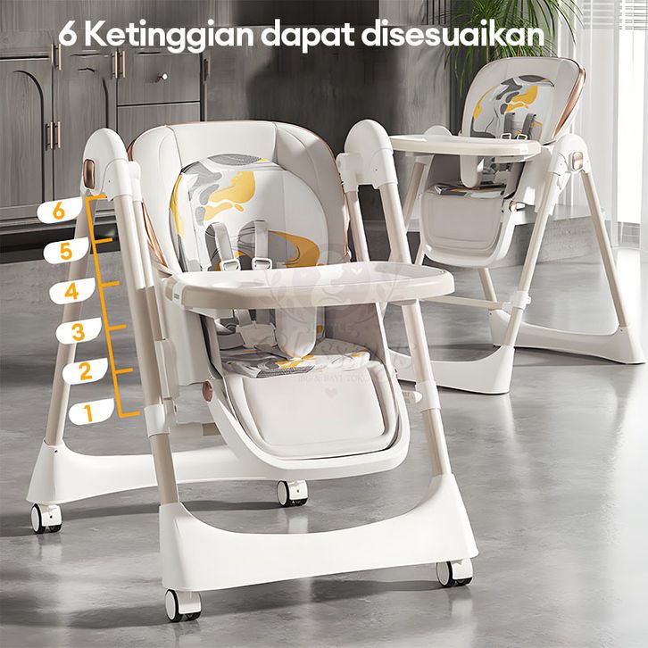 【5 in 1】Kursi Bayi Lipat Minimalis - High Chair + Ayunan Seat Kulit Lembut, Untuk 0-3 Tahun
