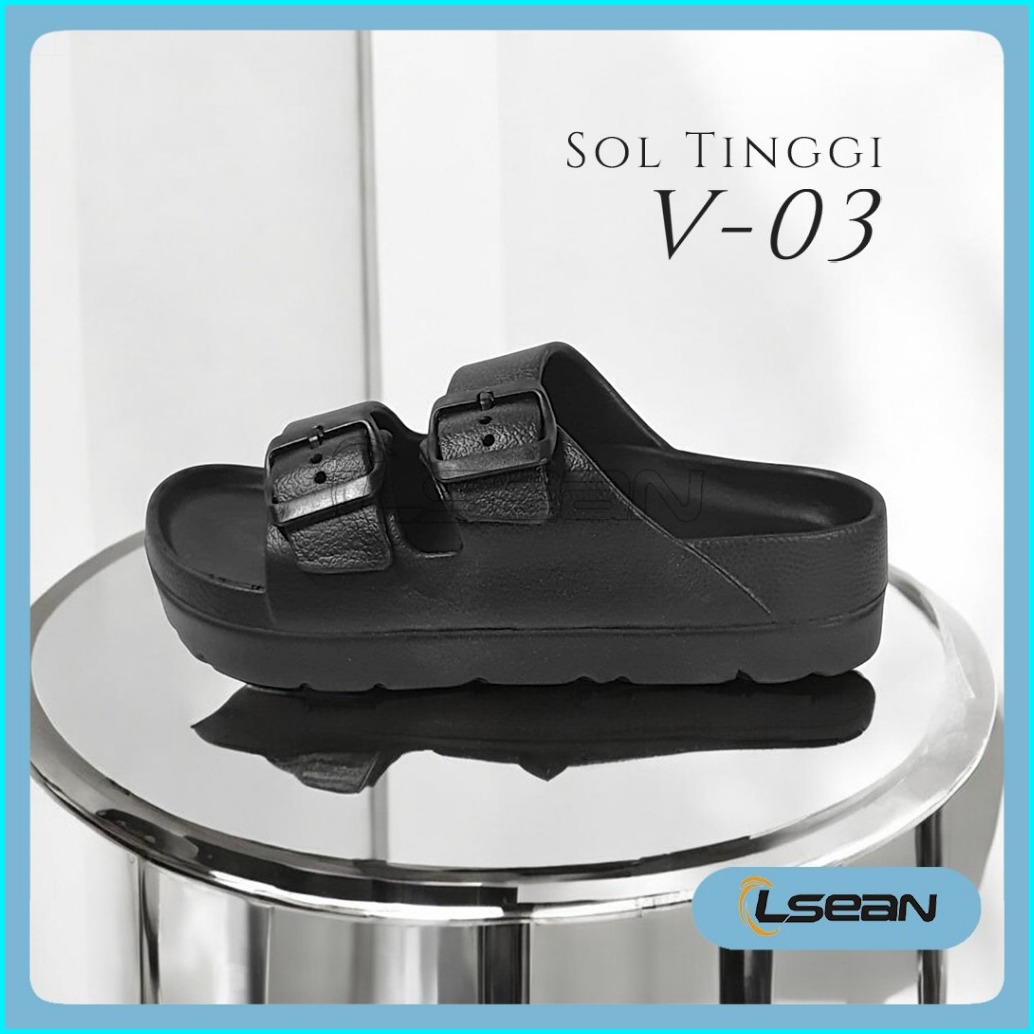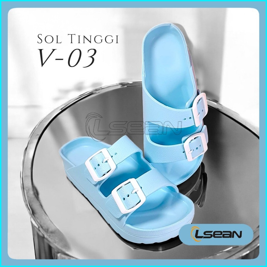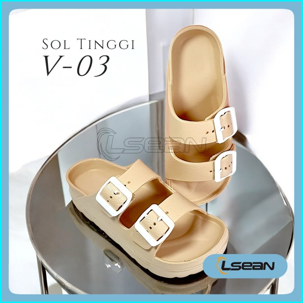 Sandal Wanita Korea Slide Platform Sol Tebal Gesper Ganda V-03
