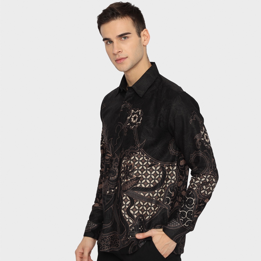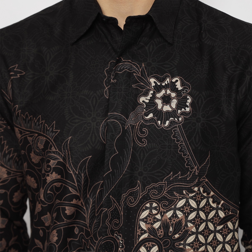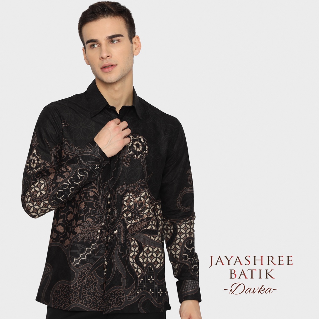 JAYASHREE - Davka Black Bahan Katun Premium - Kemeja Kerja Batik Pria Regfit Lengan Panjang