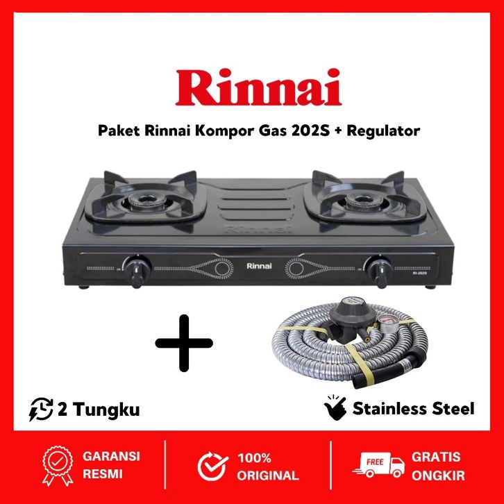 [ACE FASHION] KOMPOR 2 TUNGKU / PAKET BUNDLING Kompor Gas 2 Tungku RINNAI RI 202S (+) RMS-206 M SELANG REGULATOR