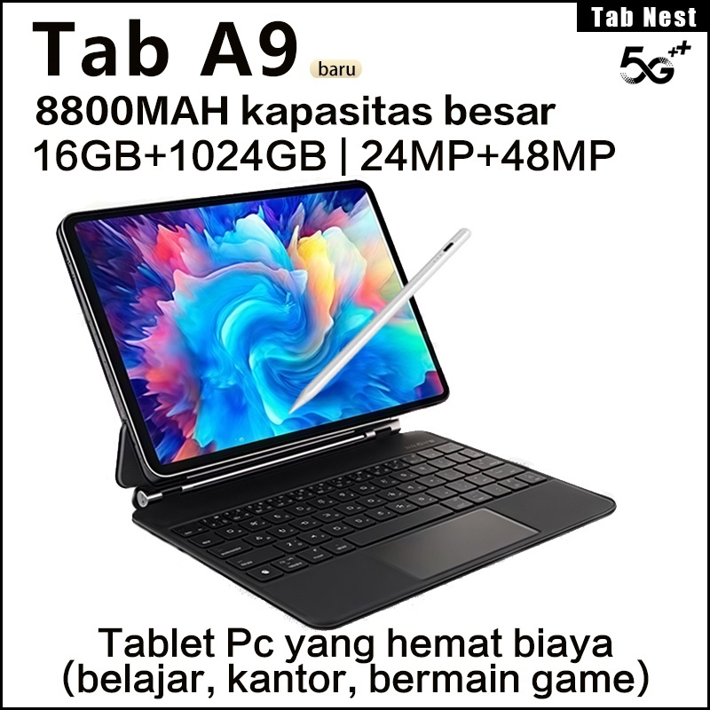 Tablet Tab A9 16GB+1024GB 1TB Tablet Android 11.6Inci Layar Penuh Layar Besar Harga Rendah Tablet A9