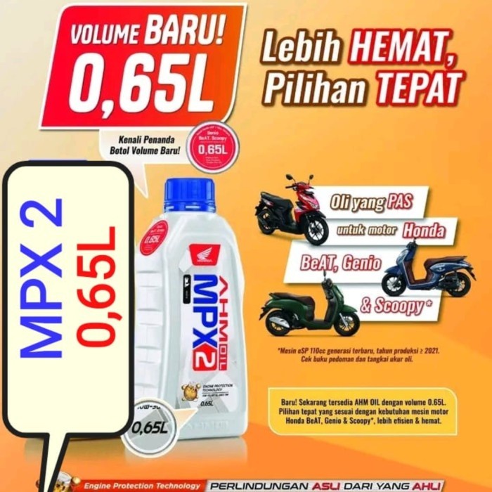AHM MPX2 650ml Oli Motor Honda Beat Genio Scoopy Matic 10W-30 0.65L
