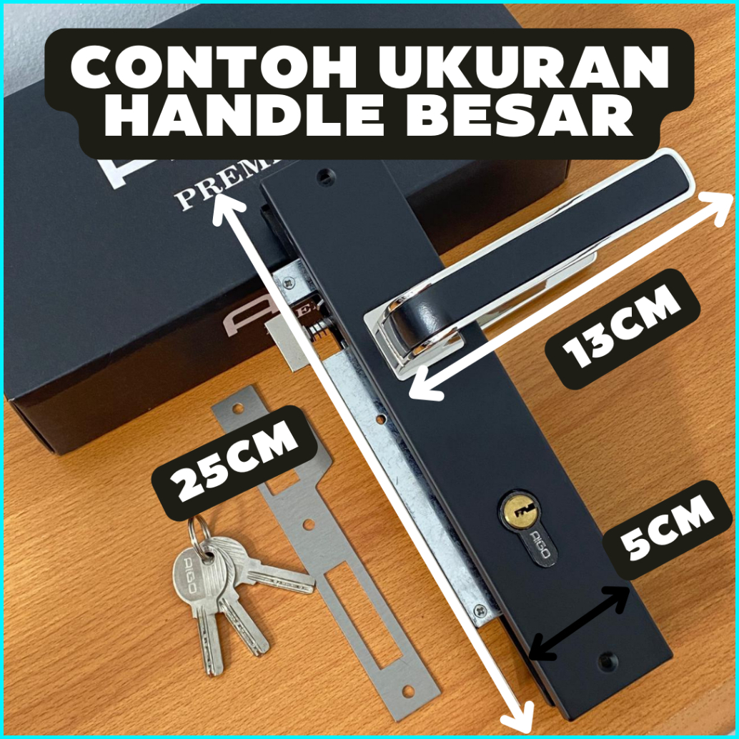 1 Set Kunci Pintu Rumah Kotak Lengkung Hitam Doff Gagang Pintu Besar 25cm Hitam Doff Minimalis