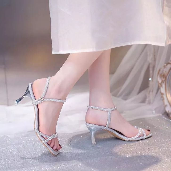 Sandal Wanita Sandal Heels Gladiator 5CM Ankle High Heels Wanita Terbaru Sandal Wanita Hak Tinggi Silver