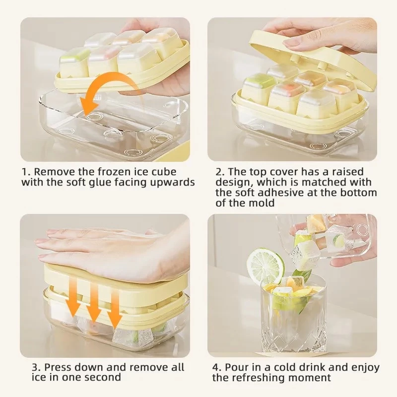 HC 6 SEKAT Cetakan Es Batu Cokelat Jelly Mode Tekan Press Dengan Wadah Tempat Penyimpanan Ice Cube Container Pencetak Es