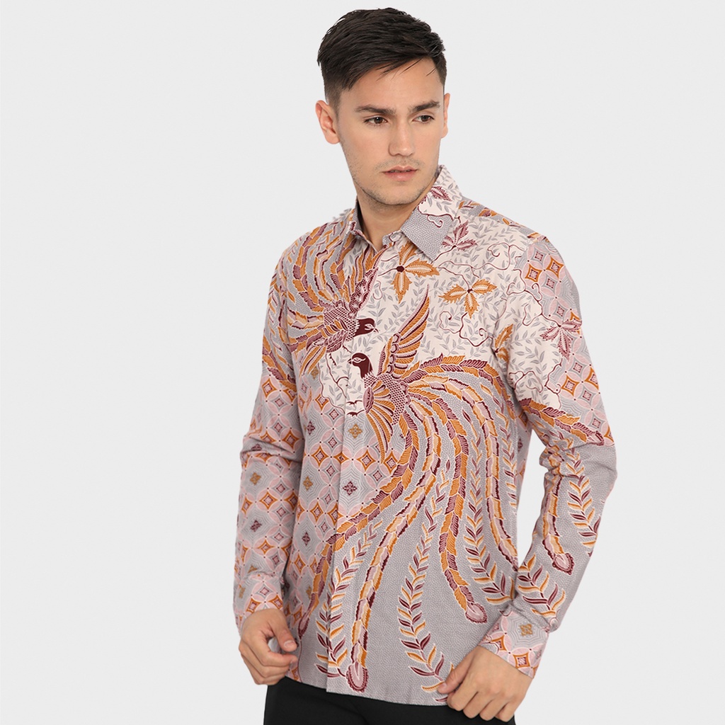 JAYASHREE - Kalingga Grey Bahan Katun Premium - Kemeja Kerja Batik Pria Slimfit Lengan Panjang