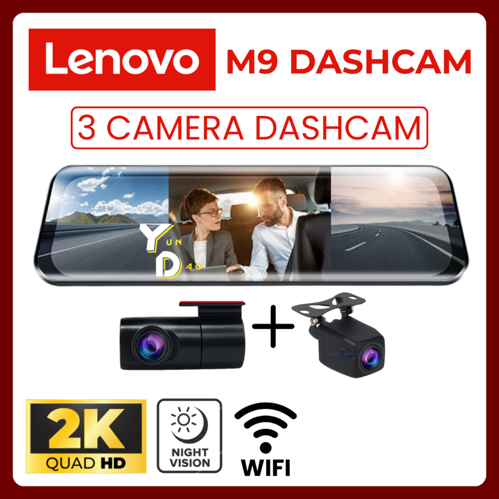 Dashcam Mobil Lenovo M9 3 Kamera Car Camera Original DVR Dual Full-HD Full Screen