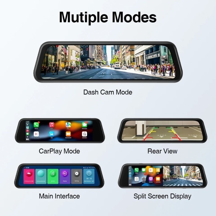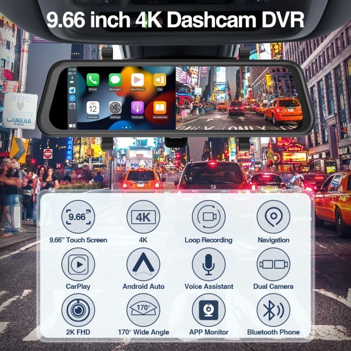 CAR DVR / Dashcam mobil 10" 4K, 2 Kamera, WIFI, Support Android Auto, Apple Car Play