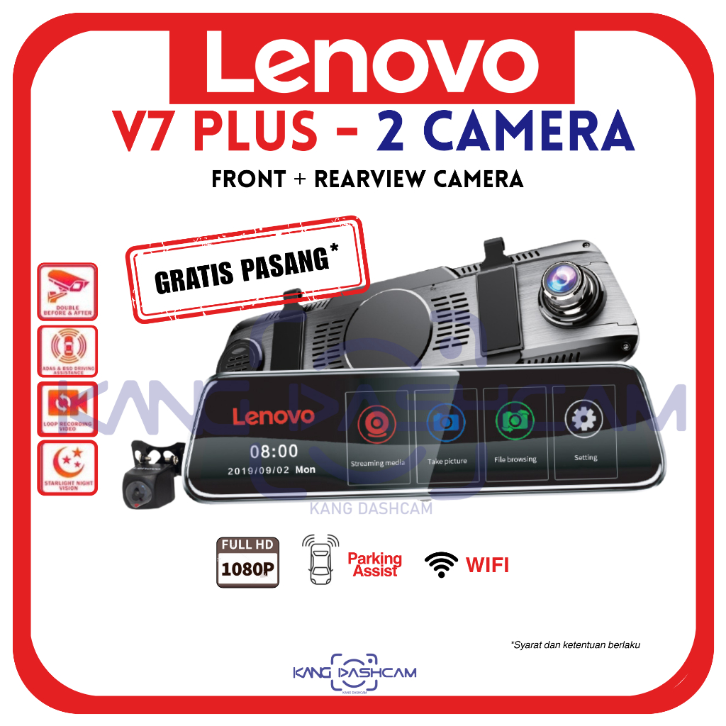 Lenovo V7 AHD / Plus Dual Camera Dashcam Car DVR Camera Mobil