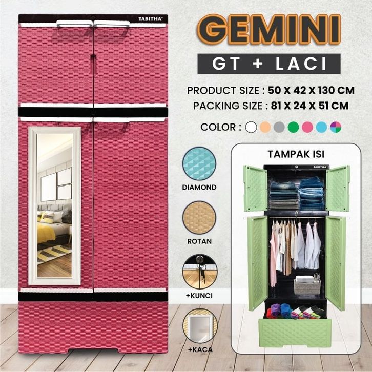 PROMO Lemari Plastik Pakaian Kabinet Gemini Laci Gantungan ORIGINAL