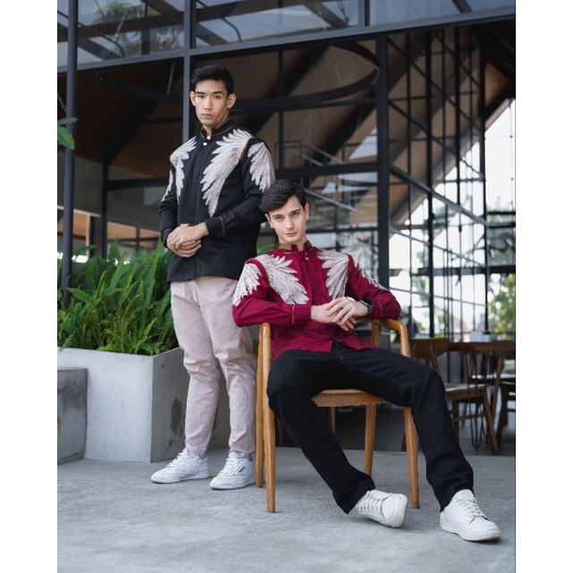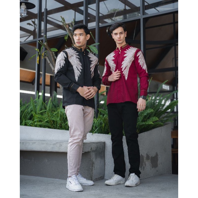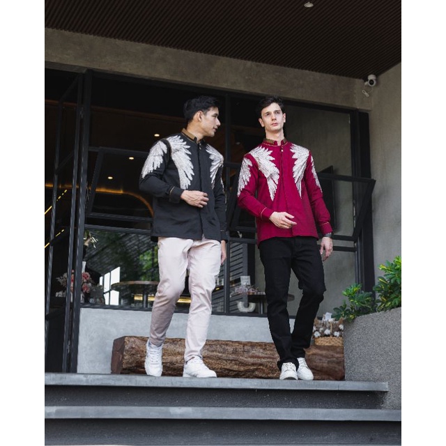 Kemeja Bordir Pria NUC.ID Fitrah 04 Maroon Katun Lengan Panjang