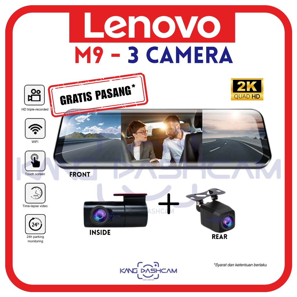 Lenovo M9 3 Camera Dashcam 2K Dash Cam Car Camera Mobil