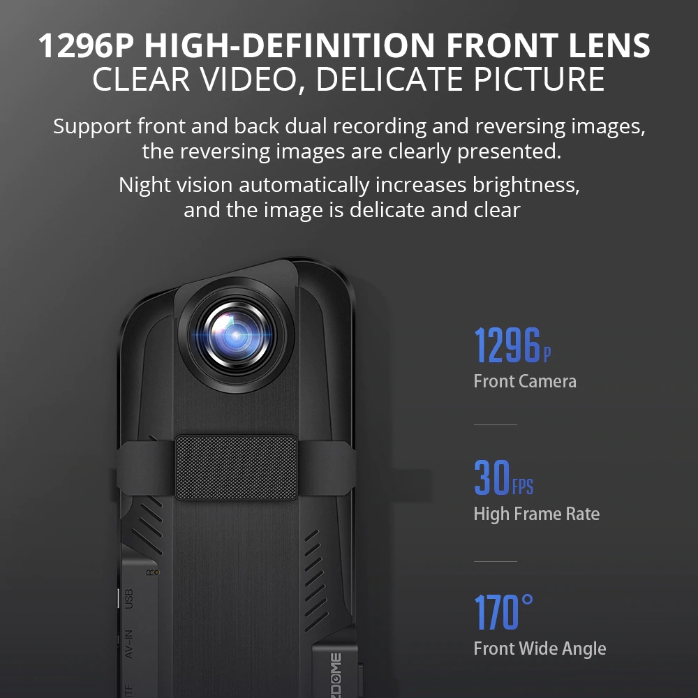 AZDOME Mirror Dash Camera Touch Screen 1080P ADAS Parking Mode with GPS