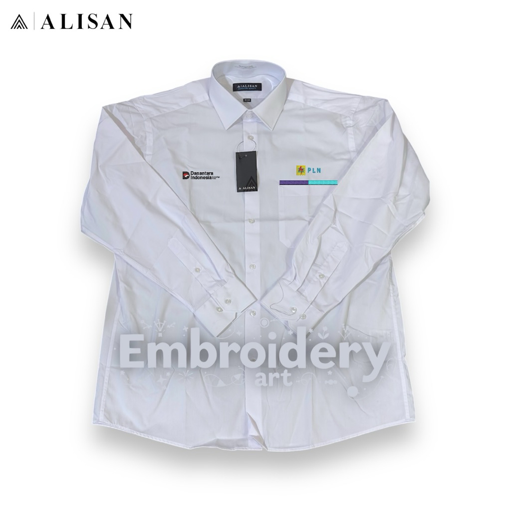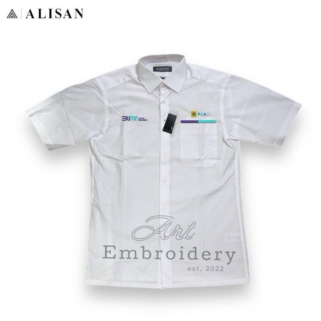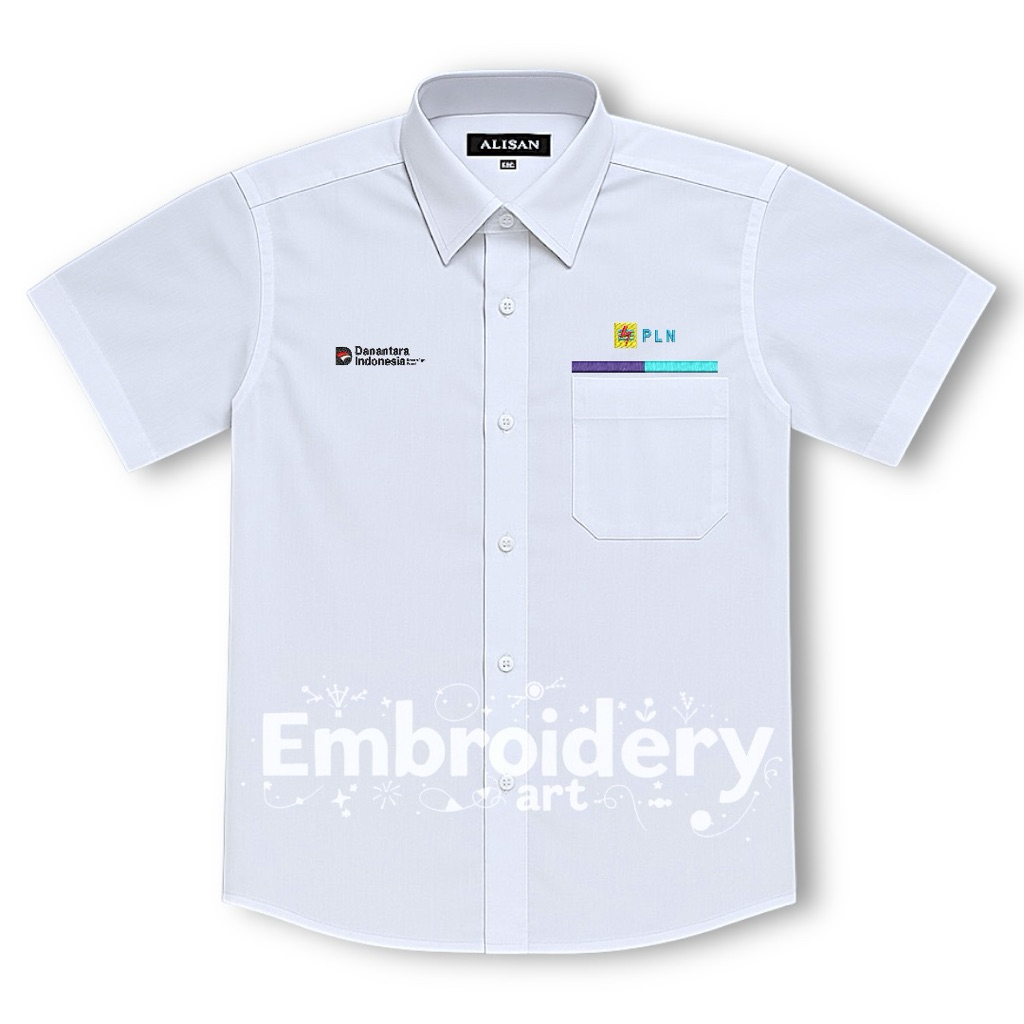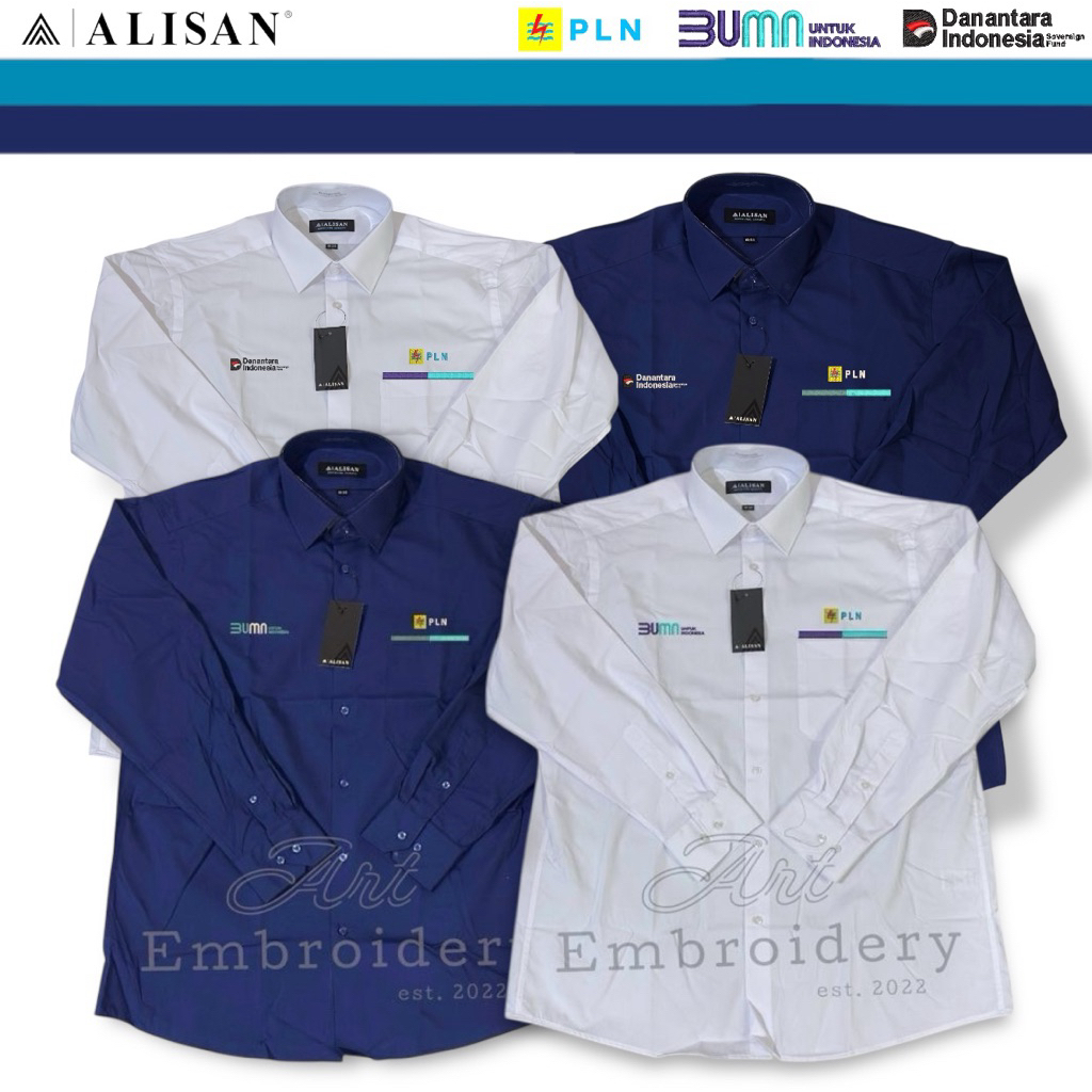 [Alisan] Kemeja Seragam BUMN/Danantara PLN Full Bordir Lengan Panjang-Pendek bahan mix-cottonpolly