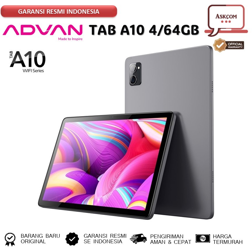 ADVAN TAB A10 4GB 64GB 10"inches IPS 5000 mAh ANDROID 14 GARANSI RESMI