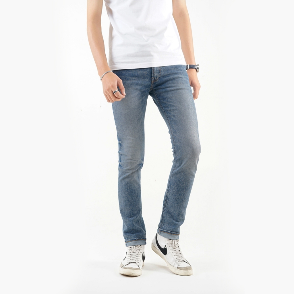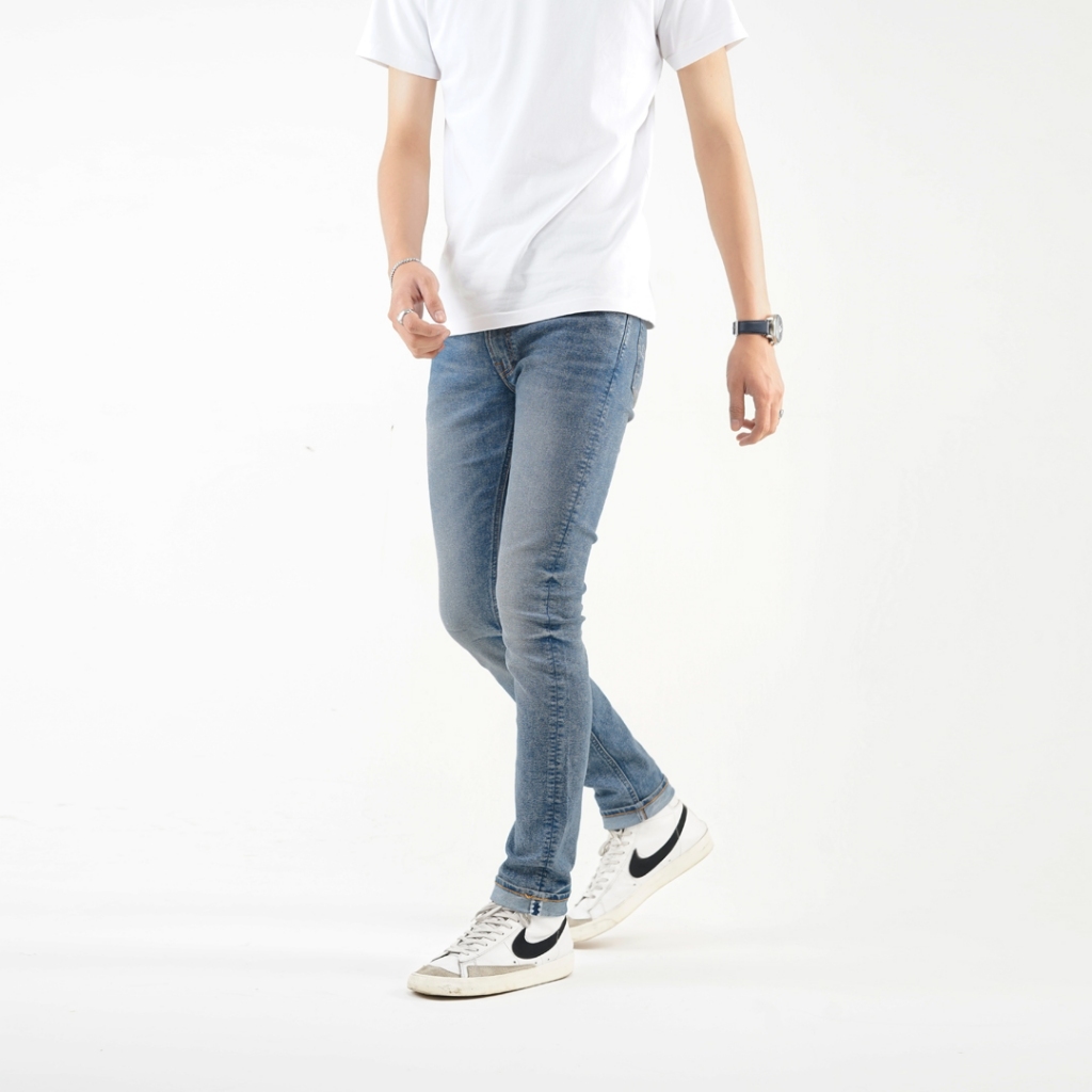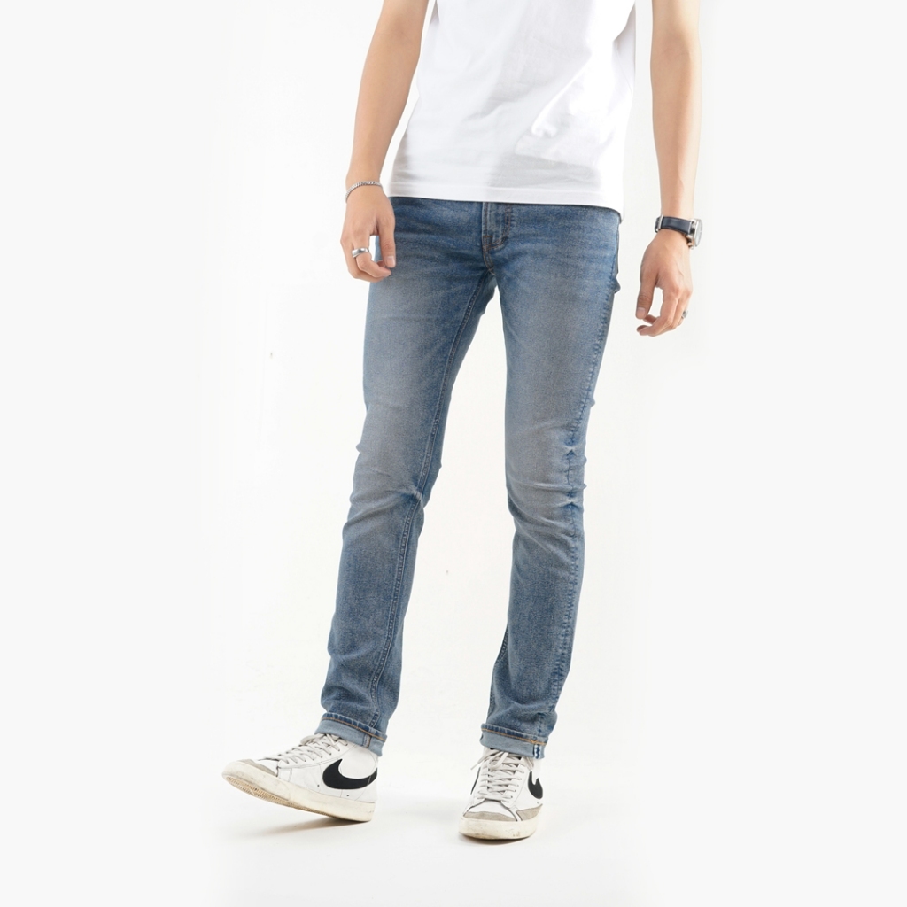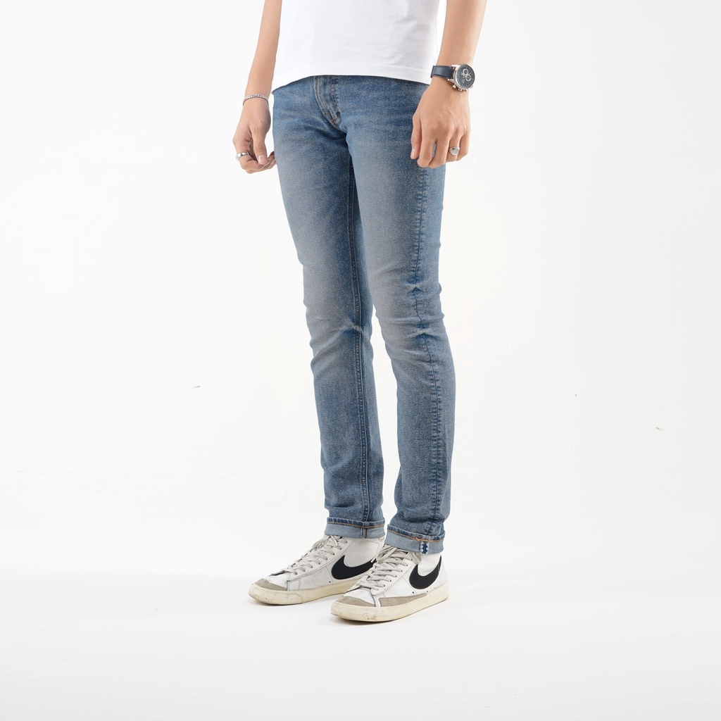Volkvog Jeans Porto Celana Panjang Washed Denim Pria Superslim Biru