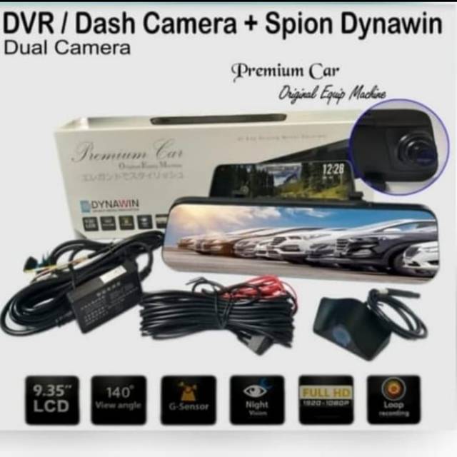 DVR Dashcam Dynawin Dual Kamera Spion + Belakang