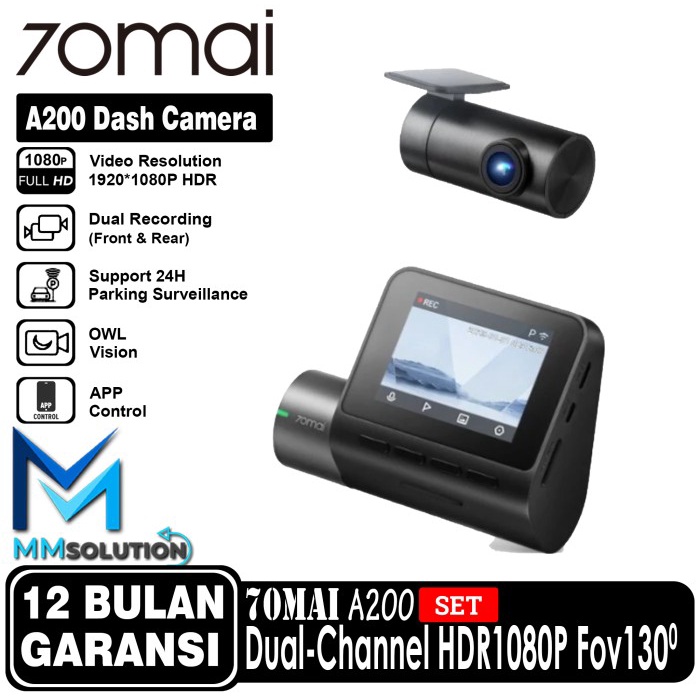 70mai Dash Cam A200 Set Dual-Channel HDR 1080P Fov130 Night Owl Vision