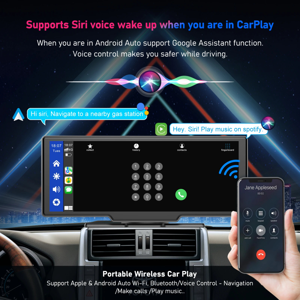 Dashcam Dual Camera Wireless Head Unit Touch Screen 10.26 Inch - D1026-DA - Black