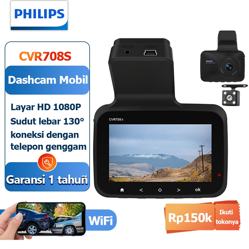 Philips Dashcam Kamera Dashboard Mobil 1080P 140° Night Vision Pengawasan Parkir 24 Jam CVR-708s