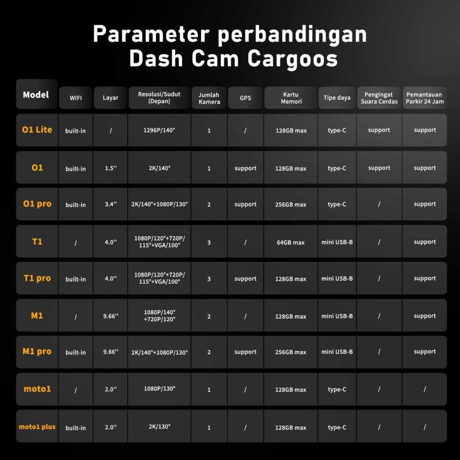 Cargoos Wifi Dash Cam 01 Lite 1296P Car DVR GPS Mobil Kamera Camera Rekam