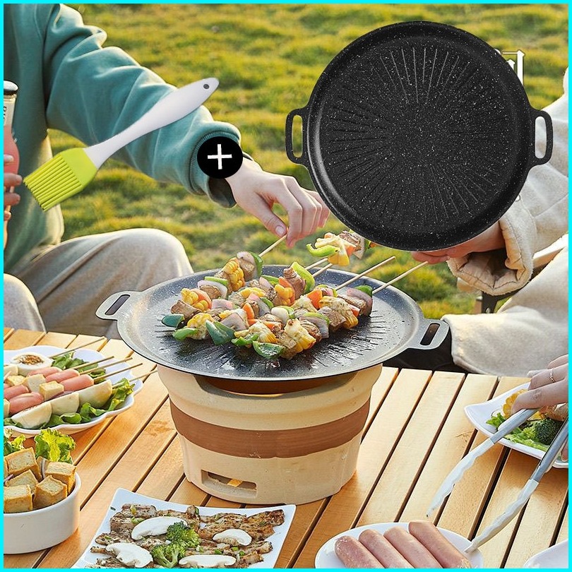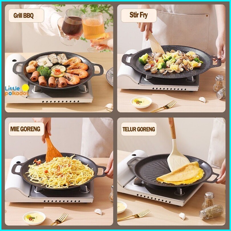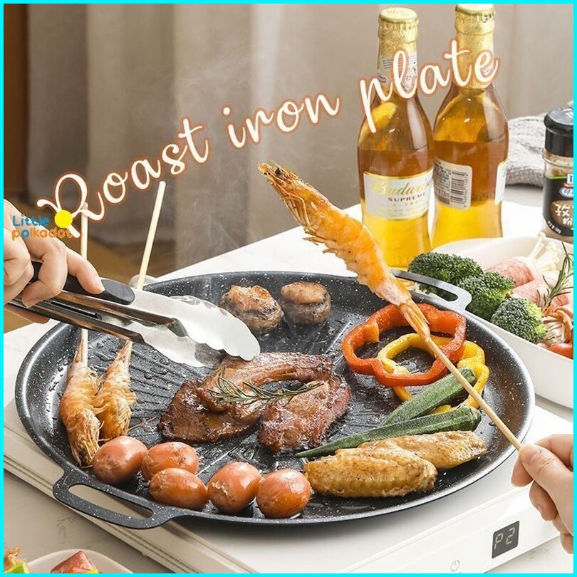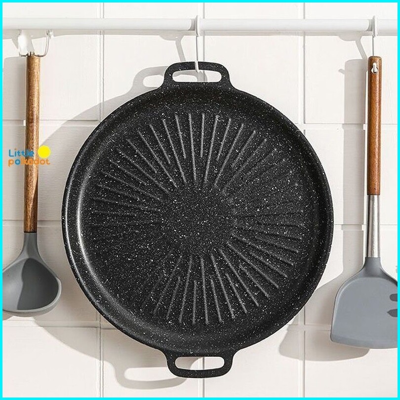 Littlepolkadotpanggangan Bulat Anti Lengket Alat Panggangan Bbq Grill Pan Hadiah Gratis Grill Brush Korean Wajan Pemangg