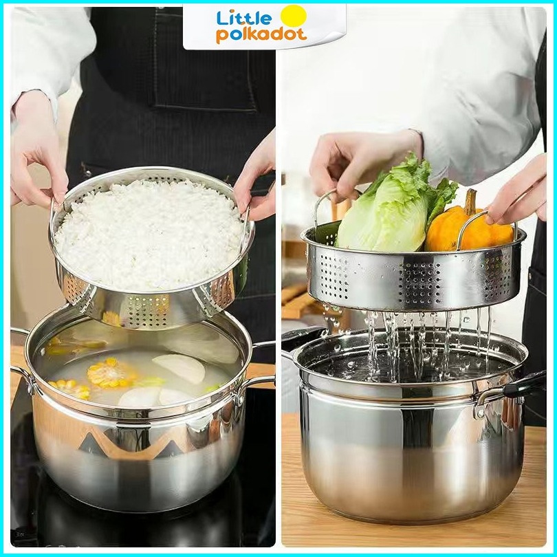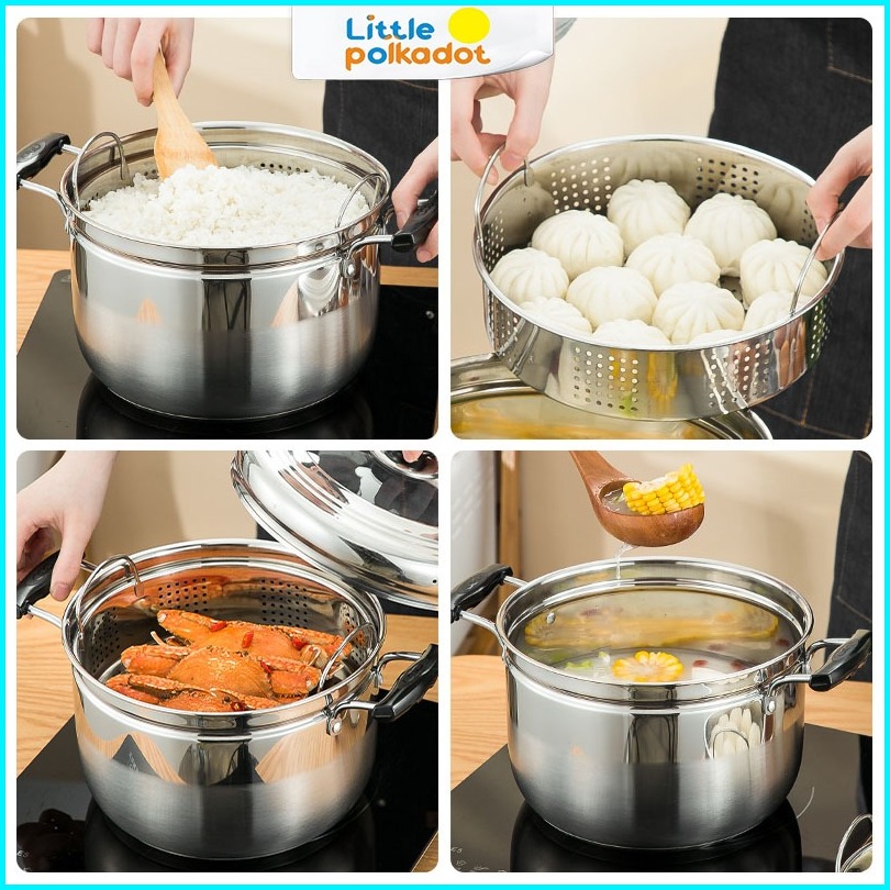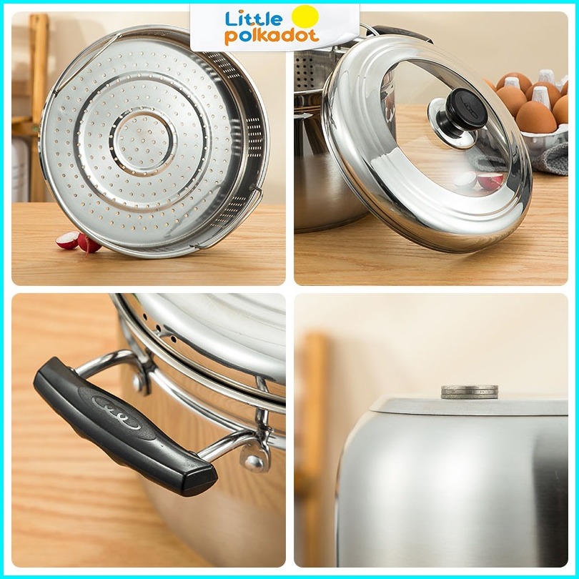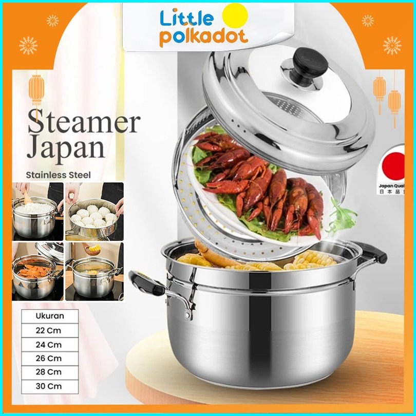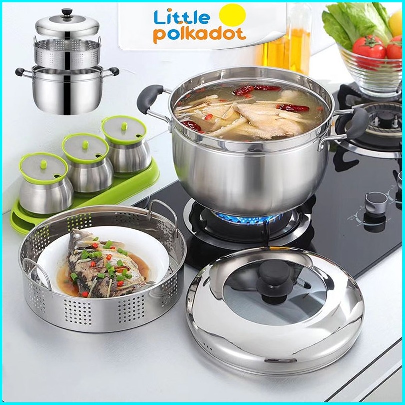 Littlepolkadotpanci Kukusan Tutup Kaca Ukuran Besar Panci Kukus 2 Susun Panci Kukus Stainless Steel Dandang Panci Steame