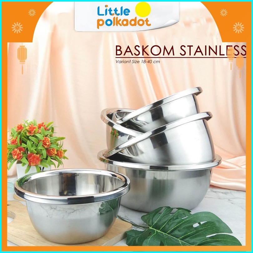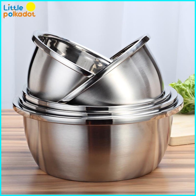 Littlepolkadot30-40cm Premium Adonan Baskom Stainless Pemukul Telur Memperdalam Desainny Jumbo Wadah Makanan Wadah Sup C
