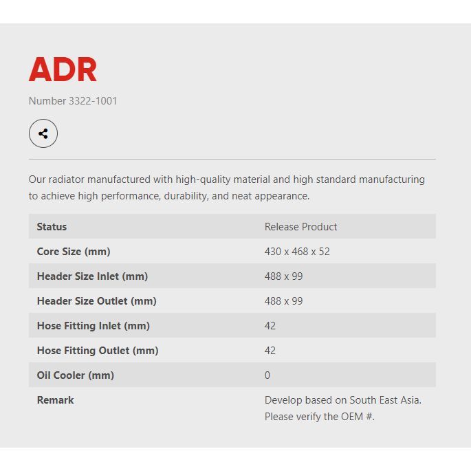 ADR Radiator MITSUBISHI COLT FE A/T 3322-1001C