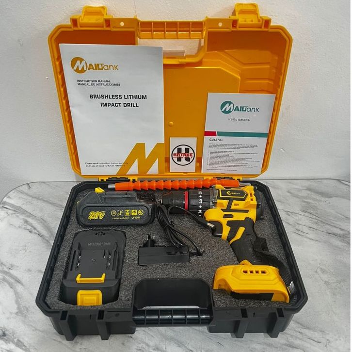 Mailtank MK12 10MM mesin bor impact baterai brushless 21V bor cas murah dengan Variable Speed , dapat 2 Baterai Untuk M