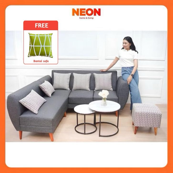 NEON Sofa Lavissa | Set Sofa L + Stool | Sofa Sudut Retro | Sofa Ru*ang Tamu Minimalis | Sofa Scandivanian DISKON