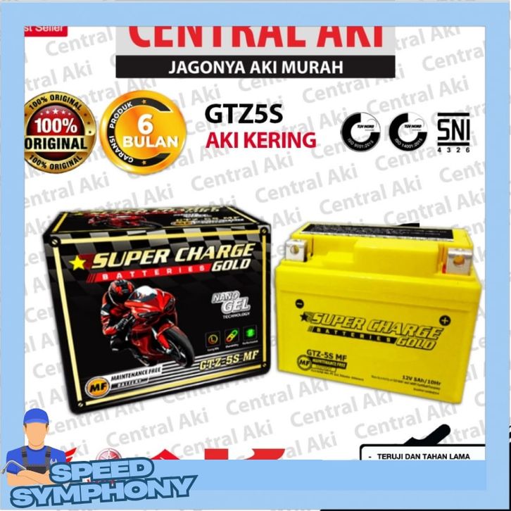 Aki Gel SUPERCHARGE GTZ5S 5AH Motor Beat Supra X 125 Scoopy Revo Mio Vario 110