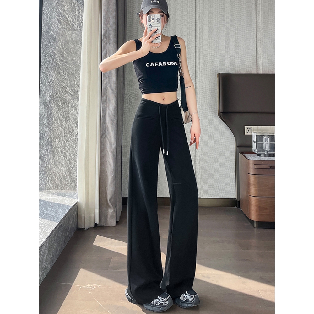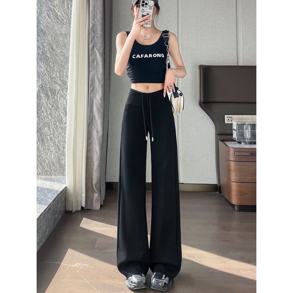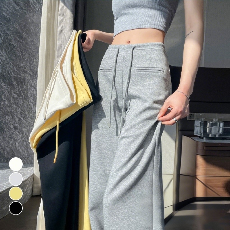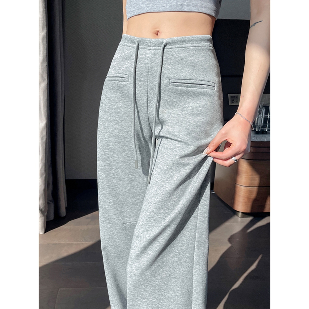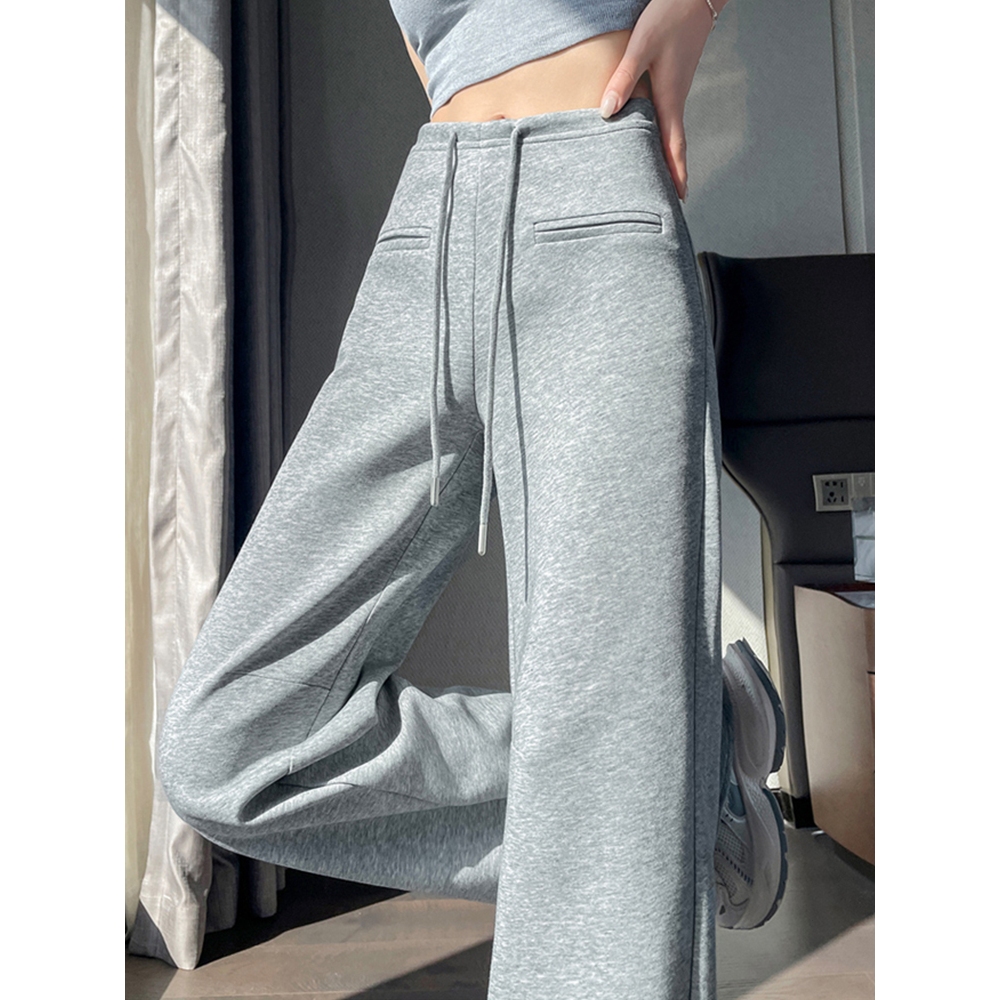 2toyoung Celana Panjang Wanita W25 Grey Lurus Sporty High Waist Nyaman untuk Musim Semi & Gugur Loose Pants Trouser Wani