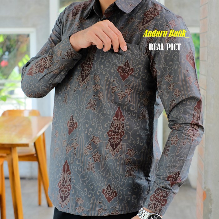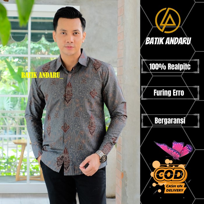 Batik Andaru Motif DARMA Baju Batik Pria Slimfit Lengan Panjang Modern Lapis Full Furing Erro Heem Kemeja Premium Warna Biru
