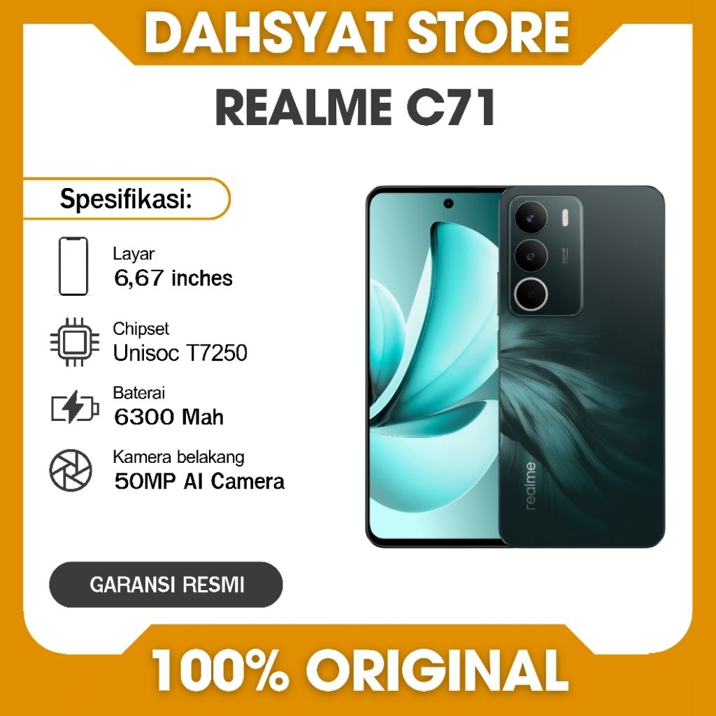Realme C71 4+8/128GB 6+8/128GB 8+16/128GB Baterai 6300mAh 45W SuperVooc Original Bergaransi