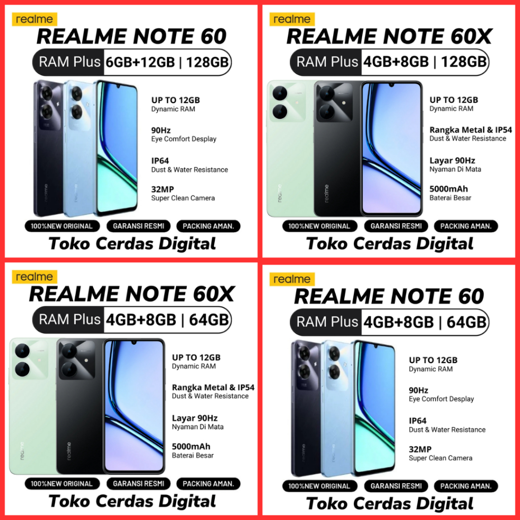 Realme Note Series Note 60 | Note60x 6/128GB | 4/64GB | 4/128GB Garansi Resmi 12 Bulan | Note 60X | Note 60 X | Note60 X