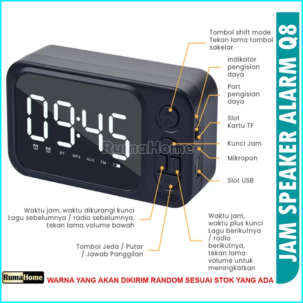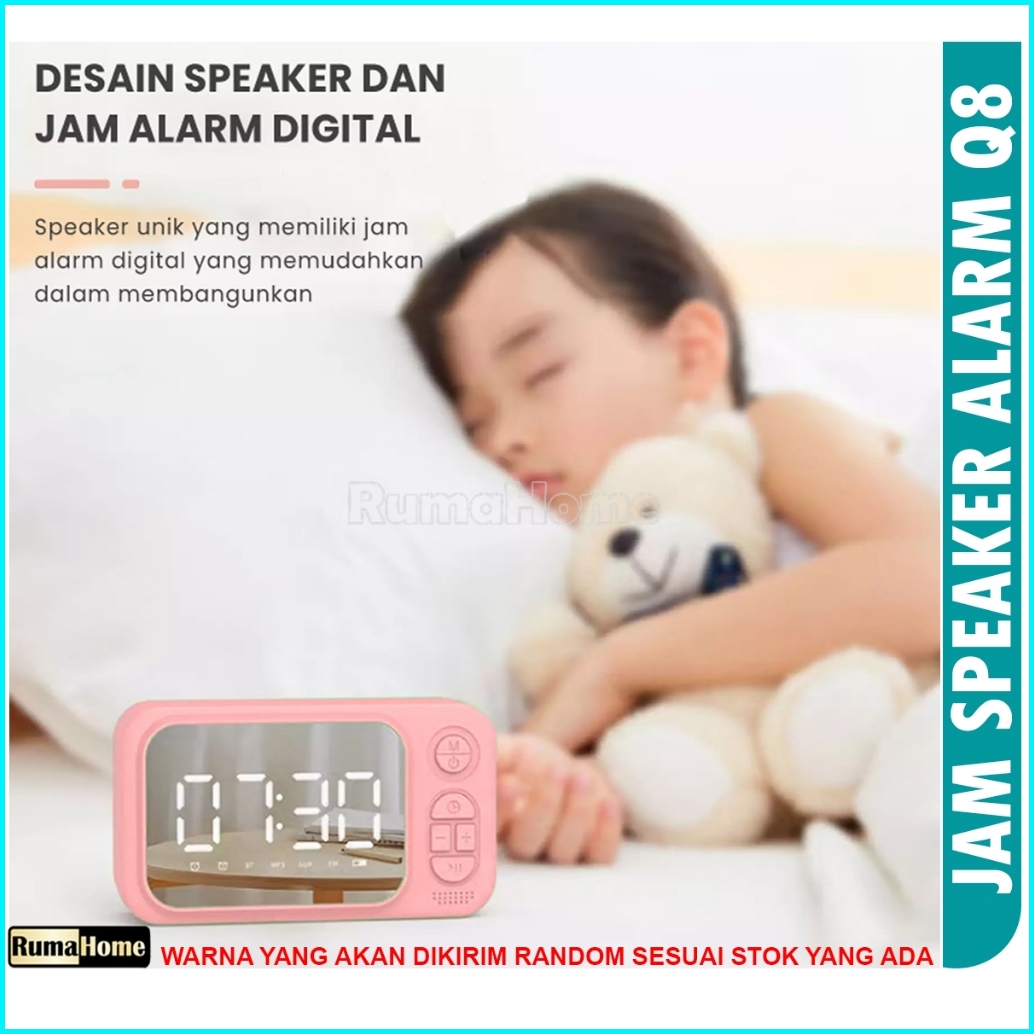 Speaker Alarm Jam Alarm Q8 Pintar Dengan Bluetooth Speaker Mirror Display