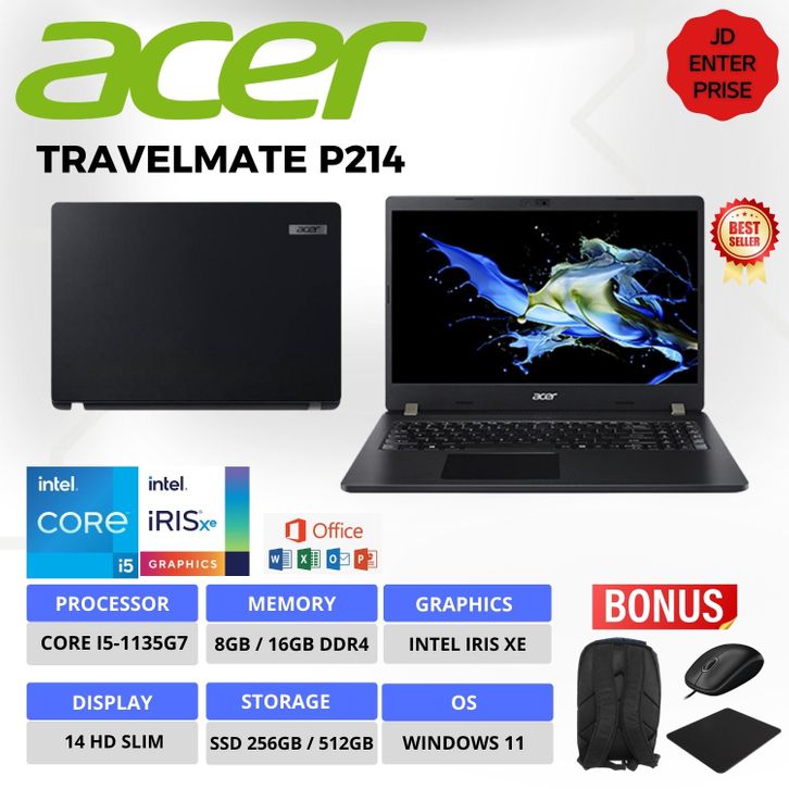 ACER Travelmate P214 - intel Core i5-1135G7 RAM 16GB/SSD 512GB Iris Xe 14 Slim Windows 11