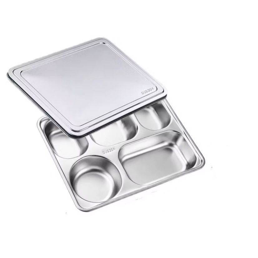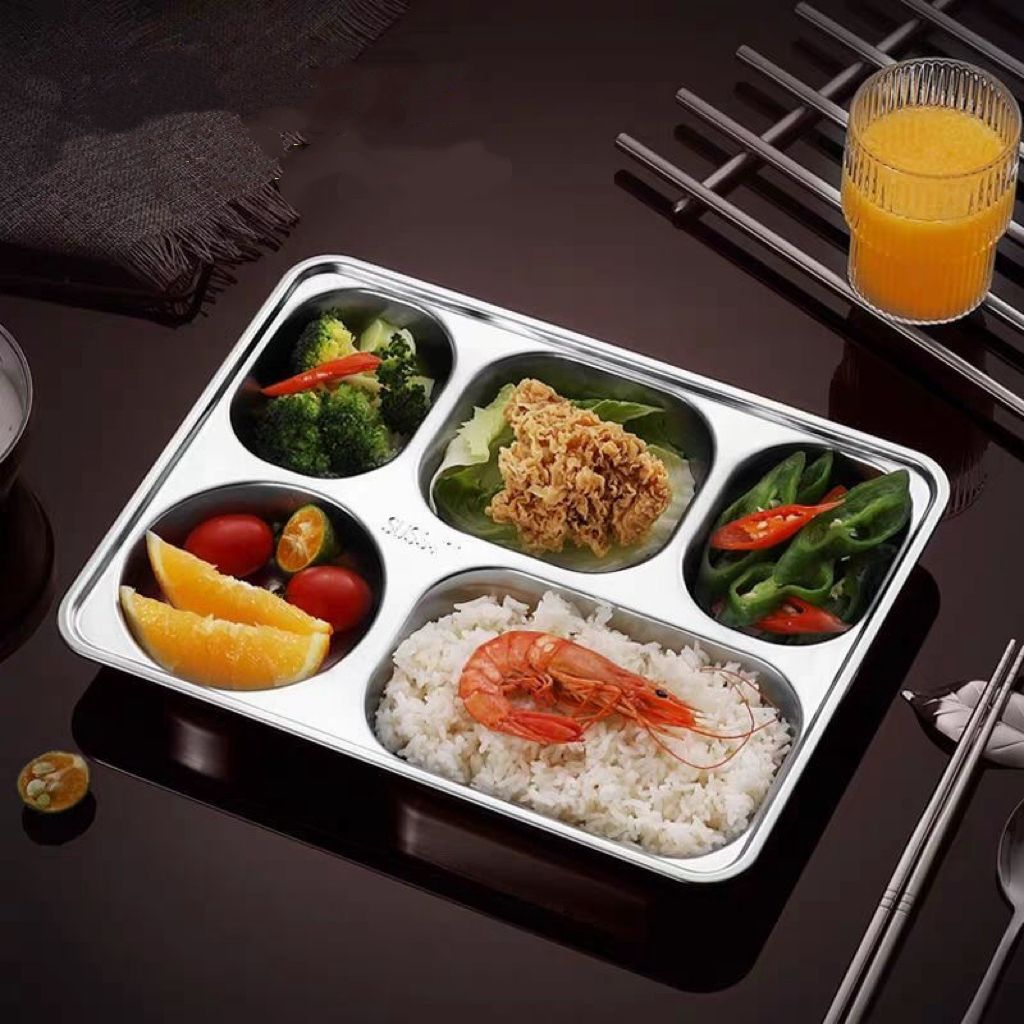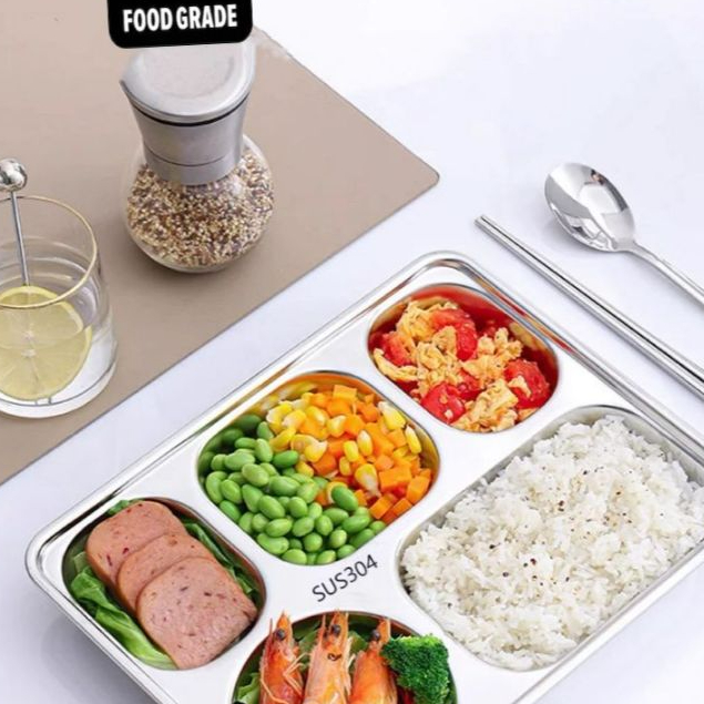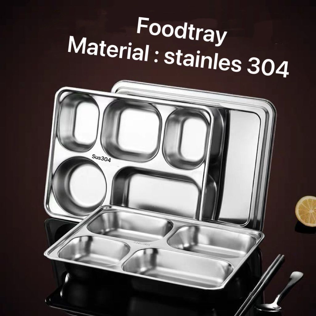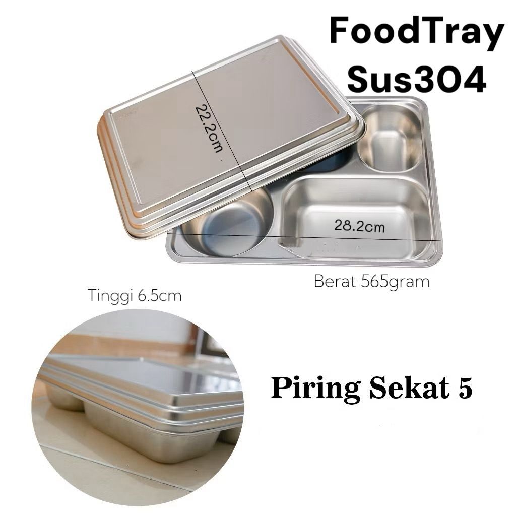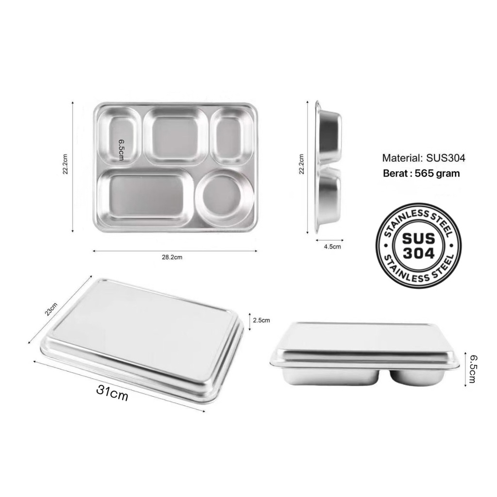 Tempat Makan 5 Sekat Bahan Premium Tebal Foodtray Sus 304 Plus Tutup Stainles