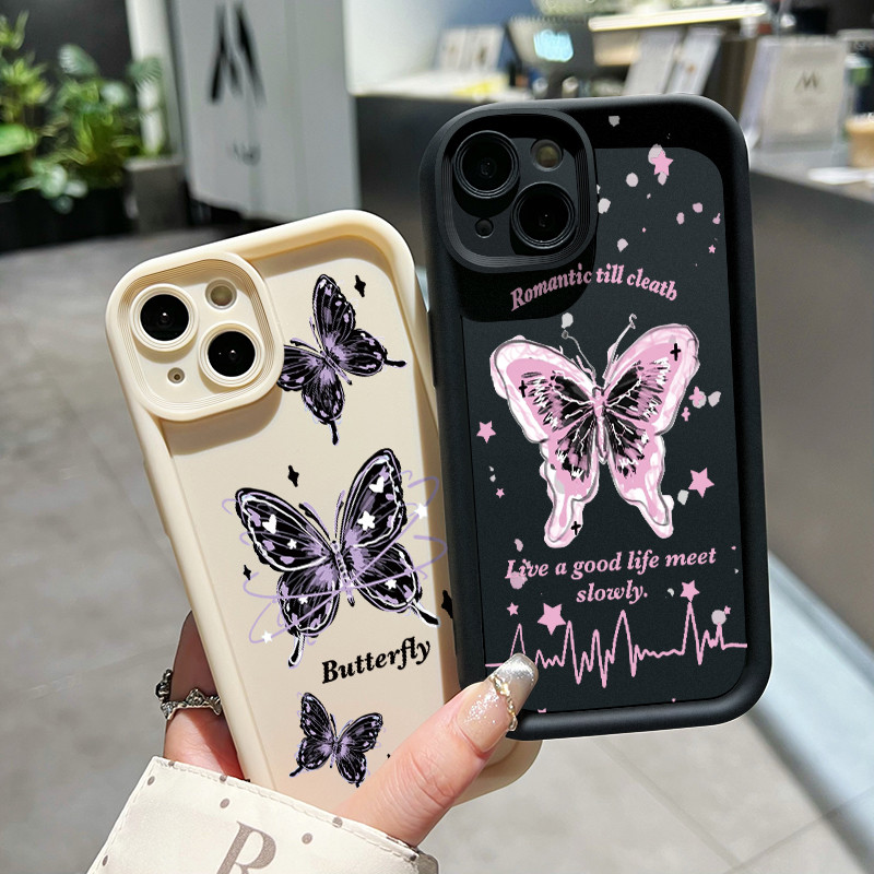 MHKEID Casing Hp Untuk Realme C15 Case Cesing pola kupu-kupu baru Casing Silikon Kesing HP Anti Drop Kasing Softcase